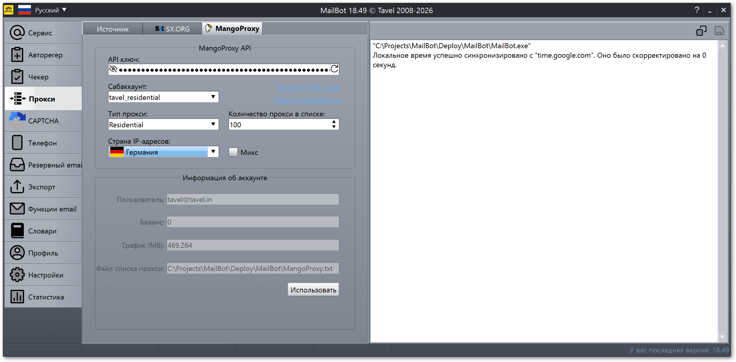 - в опцию включена активная ссылка на сайт вашего сервиса для решения CAPTCHA в этом разделе: https://tavel.in/mailbot/#CAPTCHA