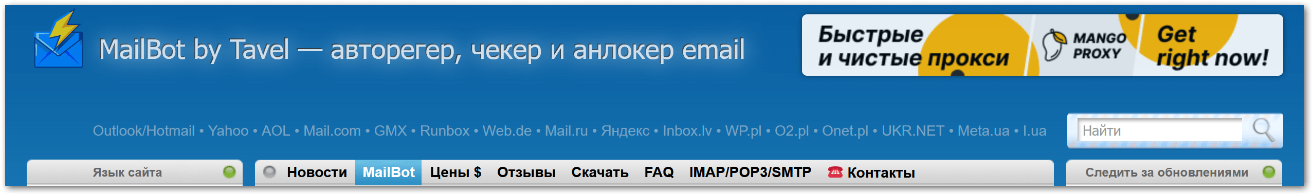Рекламные площади на сайте MailBot